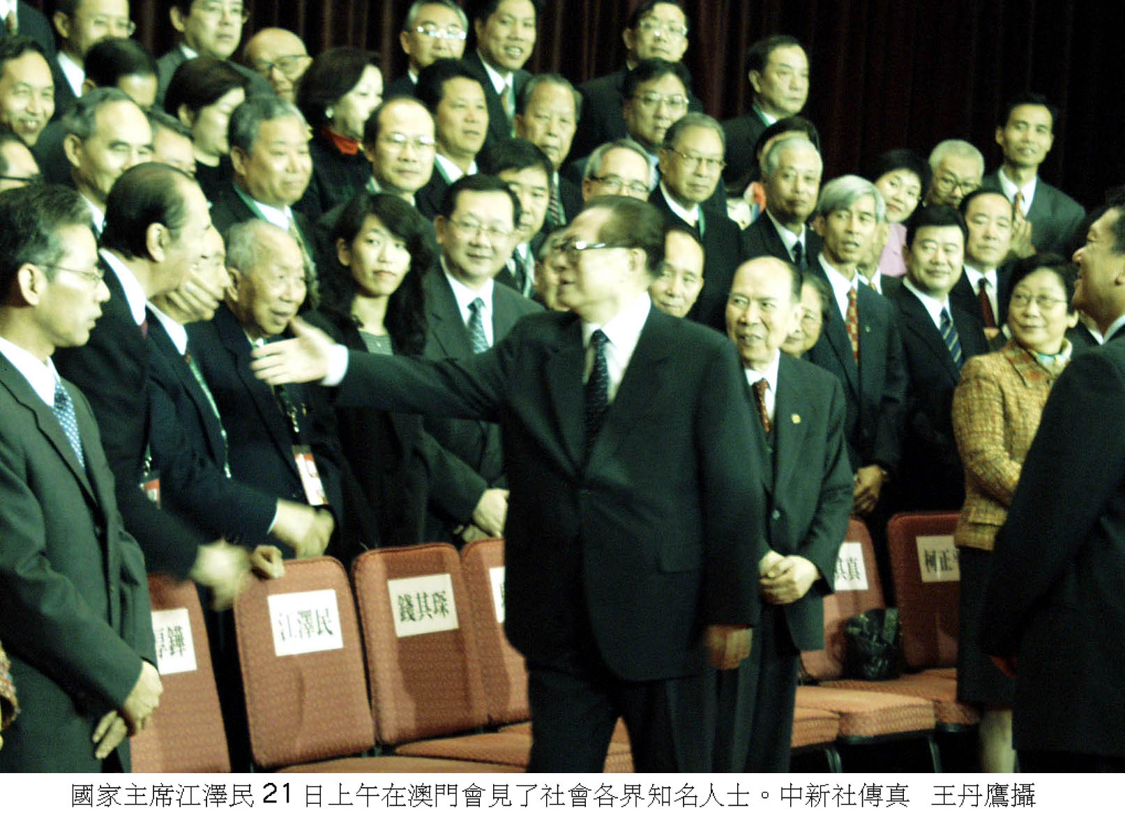 特寫:江澤民主席與澳門各界知名人士談心 2000年12月21日 14:34 ![]() 國家主席江澤民21日上午在澳門會見了社會各界知名人士 中新社澳門十二月二十一日電題:特寫:“冬天來了,春天還會遠嗎?”──江澤民主席與澳門各界知名人士談心
