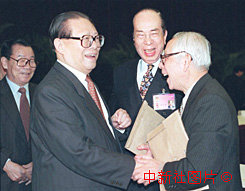 國(guó)家主席江澤民四日參加全國(guó)政協(xié)港澳聯(lián)組會(huì),并與委員們一起熱烈交談。作者:宗金柱