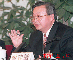 全國人大新聞發(fā)言人曾建徽,四日在九屆全國人大三次會議新聞發(fā)布會上介紹大會議程,并就記者關(guān)于臺灣、反腐敗、西部開發(fā)等方面的問題作了回答。作者:王麗南