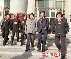 全國人大代表中的六名女法官,六日結伴到人民大會堂參加九屆全國人大三次會議第二次全體會議。作者:宗金柱