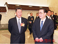 李鵬委員長八日到人民大會堂澳門廳看望出席九屆全國人大三次會議的澳門代表。作者:李剛