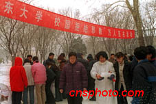 近日山東大學(xué)師生冒著嚴(yán)寒在校園舉行“校園拒絕邪教”萬人簽名活動(dòng)。中新社傳真 荊強(qiáng)攝