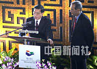 中國外經貿部副部長龍永圖二十六日在海南省博鰲亞洲論壇舉行的午餐會上,就中國加入世貿組織的現狀與前景發表演講,并回答各國嘉賓的問題。中新社記者 賈國榮 攝