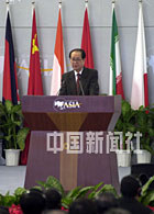 錢其琛副總理27日在海南博鰲亞洲論壇成立大會上講話,指出亞洲仍然是世界上經濟增長最快和最具發(fā)展活力的地區(qū)之一。中新社記者 賈國榮 攝
