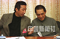 中國著名電影導演馮小寧與張藝謀,十一日參加全國政協九屆四次會議文藝組討論時,相互切磋拍攝手法。中新社記者 劉可耕 攝