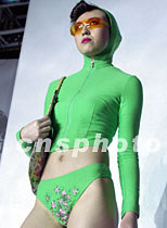 廣東東莞市天倫實業有限公司,二十七日在北京舉行“軒妮.女人香”專場時裝作品發布會,著名旅美高級服裝設計師劉洋創作新款作品。圖為中國名模展示休閑女裝。中新社記者 錢興強 攝