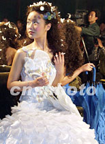 香港著名服裝設計師尹泰尉先生,一日晚在京舉行個人專場時裝發布會,特邀參加此次展示的少女模特,為展示帶來青春浪漫的氣氛。中新社記者 錢興強 攝