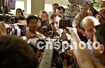 美國使館人員六日清晨在中國海南省海口市文華大酒店向新聞界說,等候北京的安排,才能再次探望美國軍用偵察機機組人員。中新社記者 賈國榮 攝