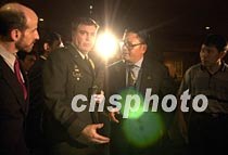 海南省政府外事僑務辦公室主任陳辭與美國駐華使館官員八日凌晨二時返回?谖娜A酒店,一起出席在此間舉行的新聞發布會。中新社記者 賈國榮 攝
