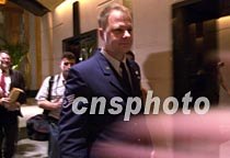 美國駐華使館軍官八日凌晨一時許與美國軍用偵察機機組人員第三次見面后,首批返回海口文華酒店。中新社記者 賈國榮 攝