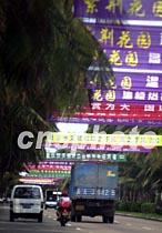 海南省會海口市如今是美國駐華使館官員一行和美國軍用偵察機機組人員所在之地,市區(qū)主要街道椰林綠葉與鮮艷的橫幅廣告十分奪目。中新社記者 賈國榮 攝