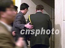 美國駐華使館官員席樂高九日晚八時在海口文華酒店出席海南省外事辦公室舉行的新聞發(fā)布會后,在中方人員的陪同下走后門離去,避免被記者圍追提問。中新社記者 賈國榮 攝