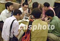 一批日本記者連日在海南省海口文華大酒店整天追蹤采訪美國軍用偵察機撞毀中國戰(zhàn)機事件,獲得報道信息后往往圍在圓桌邊共同分享。中新社記者 賈國榮 攝
