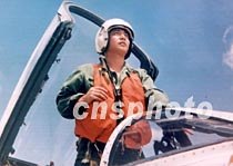 中國飛行員王偉與戰機(資料)