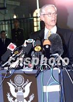 美國駐華大使普理赫十一日晚在北京就美國關于撞擊事件的致歉信接受中外記者采訪。中新社記者 滿會喬 攝