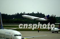 美國軍用偵察機(jī)的機(jī)組人員十二日清晨搭乘美國專機(jī),從中國海南省海口市美蘭機(jī)場起飛離境。中新社記者 賈國榮 攝
