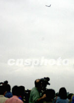 中外記者十二日凌晨七時許在中國海南省海口市美蘭機場邊,遠(yuǎn)遠(yuǎn)地目擊搭載美國軍用偵察機機組人員的美專機起飛離境。中新社記者 賈國榮 攝