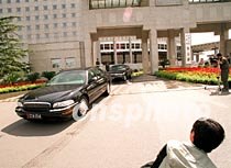 中美雙方就撞機事件十九日中午在北京繼續進行談判,美方代表團在談判結束后駛離中國外交部。中新社記者 史利 攝