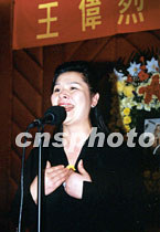 華裔歌唱家錢楊二十一日在紐約僑界舉行的王偉烈士追悼會上悲歌一曲《血染的風采》,表達對為國捐軀英雄的崇敬與懷念。中新社圖 郭健 攝