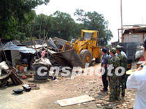 在珠海的一些部隊營區附近有不少“三無”人員搭建了違章建筑,種菜養豬,嚴重地污染了周邊的環境。珠海市有關部門二十四日采取聯合行動,拆除了唐家、炮臺山、駐澳部隊珠海港周邊的違章建筑,并將在這些地方進行綠化。中新社圖 冒韙、石頭 攝