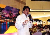 國際知名影星成龍五月三十日來到上海,為六月十日在此間開幕的香港電影展做前期推廣。香港電影展也是第五屆上海國際電影節新增的具有特色的活動之一。中新社記者 潘索菲 攝