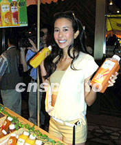 影視歌三棲藝員莫文蔚六月十三日在上海與頂新國際集團簽約,作為其新鮮純果汁“每日C”的形象代言人。據悉該果汁以新鮮為生命,這也正是莫文蔚所欣賞的。中新社記者 潘索菲 攝