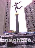 7月10日,在莫斯科世貿中心酒店前的階梯噴泉開始噴水,迎接將于12日召開的國際奧委會112次會議。中新社記者 王瑤 攝