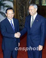 組圖:中國外長唐家璇與美國國務卿鮑威爾會談