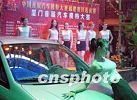 汽車模特比美首度在廈門火爆開場,引起眾多青春女性的興趣。參賽的眾佳麗以汽車為主題競相比美,獲獎者將參加在沈陽舉行的首屆全國汽車模特大賽總決賽。中新社圖 李向陽 攝