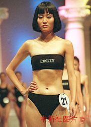 2000新絲路中國模特大賽山西選拔賽三日晚在太原市舉行,身穿泳裝的女模特選手趙鑫獲選拔賽亞軍。中新社記者:錢興強攝