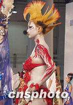 廣州著名化妝品牌“資曼婷”,三日在北京第七屆美容美發節上,舉辦“醉夢霓裳”美嬌娃內衣秀。圖為夢幻裝模特展示。中新社記者 錢興強 攝