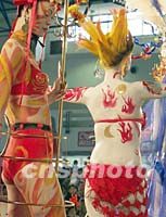 正在北京舉辦的2001中國國際美容美發節上,一商家推出夢幻內衣秀。中新社記者 錢興強 攝