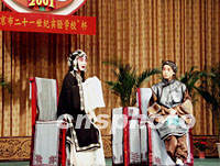 十二歲的沙霏(左)和她的同學(xué)九日晚在北京長(zhǎng)安大戲院表演京劇《六月雪》片段,沙霏在劇中的精彩表演剛為她贏得北京第四屆少兒京昆大賽一等獎(jiǎng)。目前,中國(guó)國(guó)內(nèi)越來(lái)越多的少兒開(kāi)始喜歡國(guó)粹京劇。中新社圖 武仲林 攝