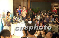 歌星容祖兒14日在香港出席某美容護膚品牌中國、香港、臺灣代言人及形象大使簽約儀式記者會。由于吸引大批傳媒到訪,容祖兒一時感觸,泛起淚光,并感謝大家支持。中新社圖 鄧慶樂 攝