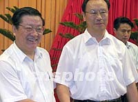 八月十五日上午,中共海南省委召開干部大會(huì)。中共中央組織部副部長黃晴宜宣布:杜青林不再擔(dān)任海南省委書記職務(wù),另有任用;任命白克明接任中共海南省委書記職務(wù)。在海南工作了九年多的杜青林與剛剛履新的白克明握手“交班”。中新社記者 關(guān)向東 攝