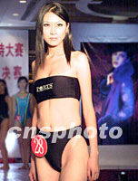 “2001年新絲路中國(guó)模特大賽‘軒妮杯’新疆區(qū)選拔賽”十九日在烏魯木齊市舉行。本次比賽共有來(lái)自新疆的90名女選手、64名男選手參加。圖為參賽選手進(jìn)行泳裝展示。中新社圖 劉新 攝