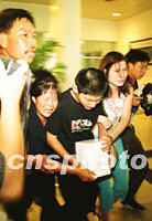 八月三十一日,在菲律賓遇害的中國人質張忠強的妻子翁秀蘭(中)懷著無比悲憤的心情,護送丈夫的骨灰從菲律賓回到福建省福清市高山鎮的家中。中新社圖 華小銳 攝