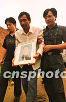 八月三十一日上午,在菲律賓遇害的中國人質薛興的父親薛昌瑞忍著悲痛親自到廈門接兒子的骨灰回家。圖為手捧薛興遺像的薛昌瑞。中新社圖 華小銳 攝