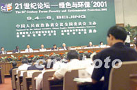 “21世紀論壇-綠色與環保2001年會議”四日在北京開幕。本次會議的主題是人類發展與環境問題。中新社記者 滿會喬 攝