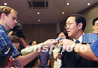 中國(guó)外交部副部長(zhǎng)王光亞,十三日在“中國(guó)申辦2010年世界博覽會(huì)”新聞發(fā)布會(huì)上,許多外國(guó)記者采訪中國(guó)政府對(duì)美被炸態(tài)度,王光亞說(shuō),中國(guó)強(qiáng)烈譴責(zé)這期駭人聽(tīng)聞的恐怖暴力活動(dòng)。中新社記者 王麗南 攝