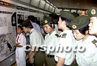 一個大型的“反對邪教、崇尚文明”圖片展十三日在廣東省博物館揭幕,一群女兵認真參觀展覽。中新社圖 劉衛勇 攝