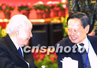 第六屆世界華商大會在南京舉行盛大歡迎晚宴 2001年09月16日 20:02 ![]() 第六屆世界華商大會組委會十六日在南京舉行盛大歡迎宴會,全國政協副主席錢偉長和與會的著名美籍華裔科學家楊振寧博士親切交談。中新社記者 李剛 攝 ![]() 第六屆世界華商大會組委會十六日在南京舉行盛大歡迎宴會,來自世界各地的代表步入會場。中新社記者 李剛 攝