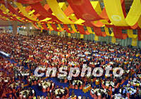 第六屆世界華商大會首次晚宴十六日晚在南京國際會展中心舉行,招待出席此次大會的五千名代表。中新社記者 史利 攝