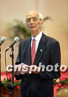 第六屆世界華商大會十六日在南京舉行盛大歡迎宴會,全國工商聯主席、本屆大會籌委會主席經叔平在歡迎宴會上講話。中新社記者 李剛 攝