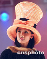 日前,在哈爾濱舉行的2001 新絲路中國模特大賽黑龍江賽區決賽上,十六歲的女模特馬陽小姐展示新款時裝。中新社記者 錢興強 攝