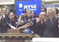 中新網紐約9月17日消息:美國紐約證券交易所在休市四天后與美國當地時間周一17日早上9:32宣布重新開市。 重新開盤前,交易所主席格拉索帶領交易員一起默哀2分鐘,哀悼九一一恐怖襲擊事件的受害者。在“天佑美國”一曲后,交易便正式開始。 就在紐約股市恢復交易前不久,美國聯邦儲備局今天突然宣布將聯邦基金利率和貼現率分別下調0.5個百分點,給美國股市帶來好消息。 更多報道:中新財經 |