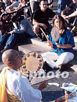 日本山妙法寺一位和尚十九日在曼哈頓下城聯合廣場擊鼓誦經,為“九一一”死難者超度。中新社記者 郭健 攝