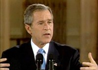 據外電報道,布什在白宮新聞發布會上說:“你們(塔利班)仍然還有一次機會,交出本·拉登及其追隨者。”“而如果你們(塔利班)交出本·拉登及其追隨者,我們將重新考慮對國家的軍事打擊。”