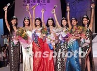 由海南省三亞市人民政府和新絲路模特經紀有限公司主辦的“2001新絲路中國模特大賽總決賽”十三日在三亞進行。圖為獲得女模大賽的冠、亞、季軍選手向賓客致意。中新社記者 錢興強 攝