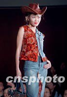 中國的傳統(tǒng)“肚兜”,被詮釋為由水貂和牛仔布V紋的新款,款式順應(yīng)了中國風(fēng)的時尚潮流,讓具有漂亮身段的年輕女孩更加風(fēng)采。圖為北京舉辦的SAGA皮草飾邊時裝設(shè)計比賽作品。中新社記者 錢興強 攝